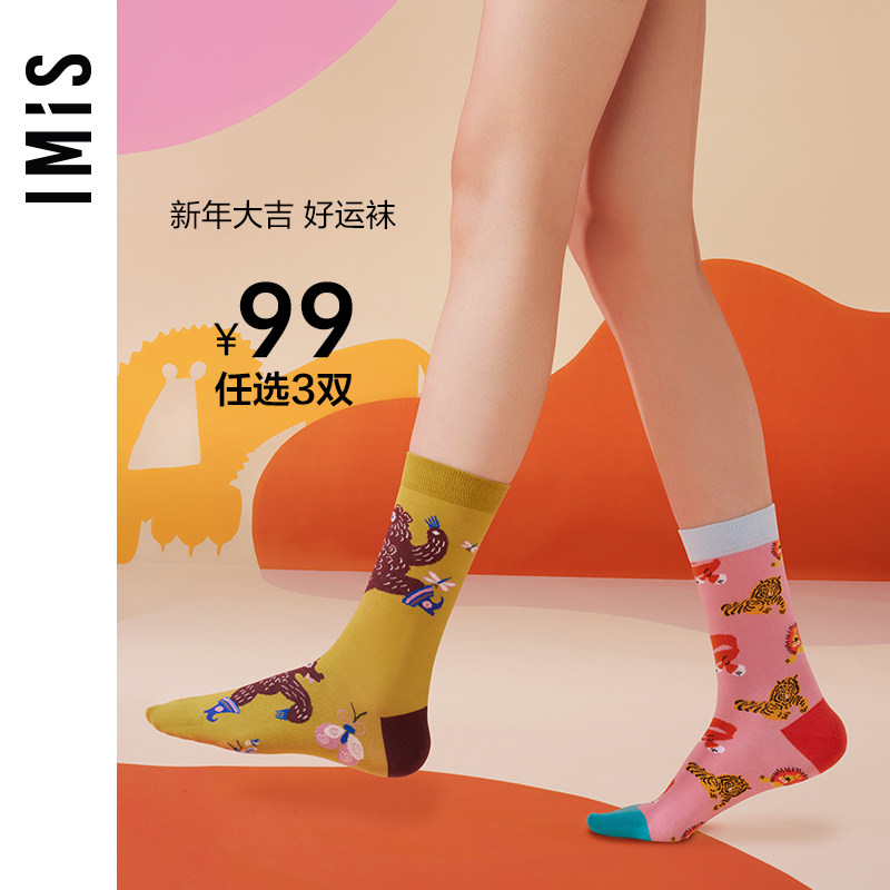 99元/3双 爱美丽山海经动物印花不掉跟无骨缝女棉短袜子IM94BHW6