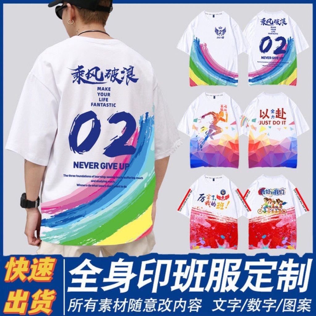 班服t恤定制全身印同学聚会广告文化衫运动会纯棉圆领短袖印图案