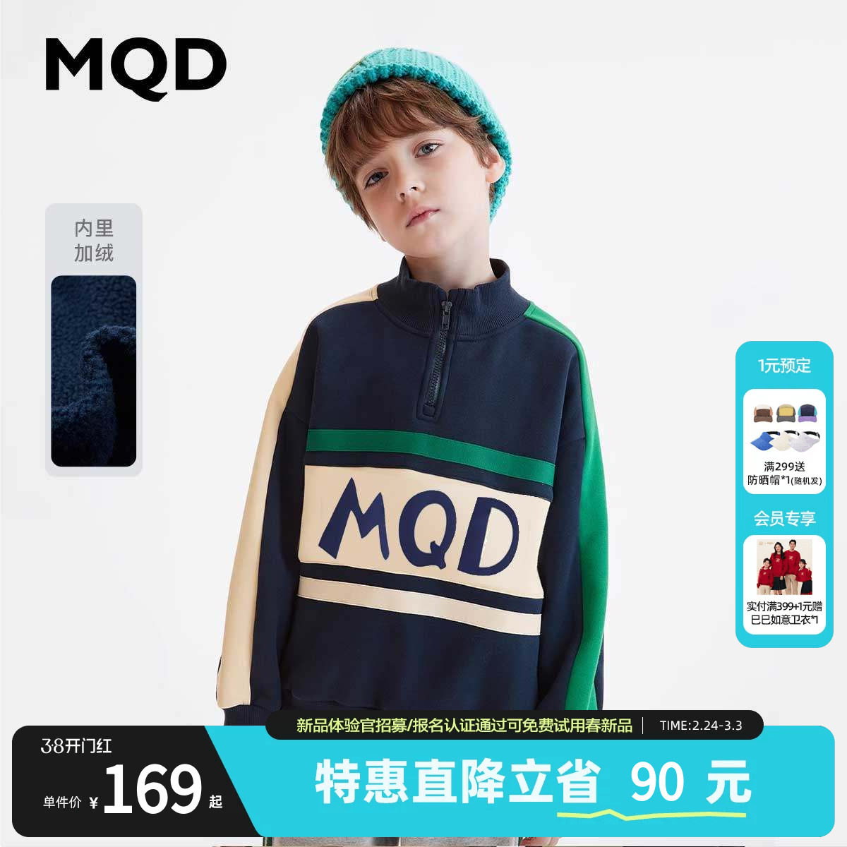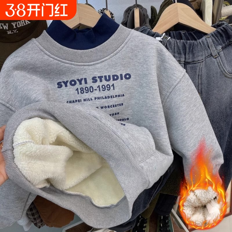 MQD童装男童加绒卫衣秋冬款宝宝儿童保暖上衣外套半高领打底衫