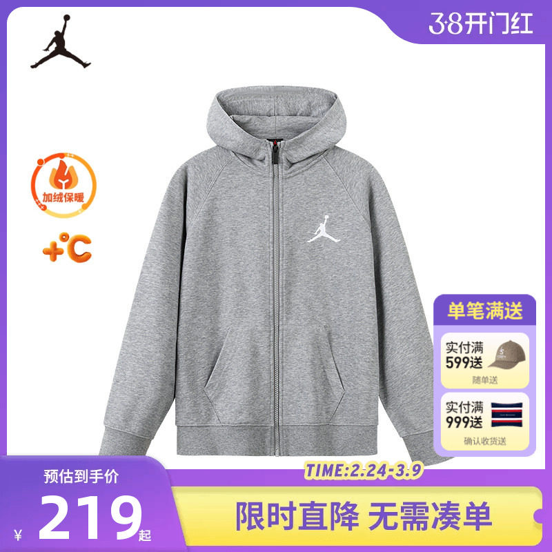Jordan儿童装男童卫衣开衫2025秋冬新款中大童上衣运动外套女童潮
