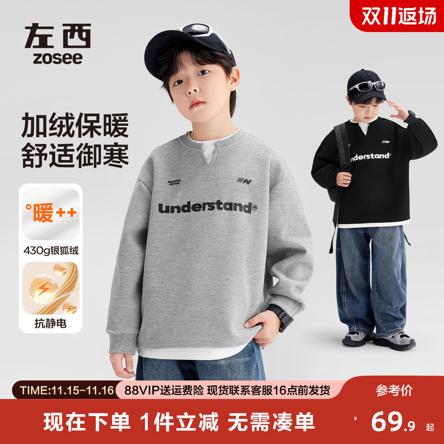 左西男童加厚卫衣2026新款儿童秋冬外套大童冬装男孩保暖上衣秋冬