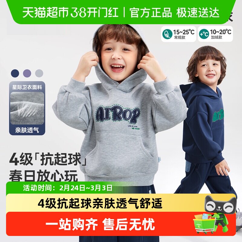 nbakids童装秋冬男童女童连帽外套简约卫衣宽松K243TJ001P