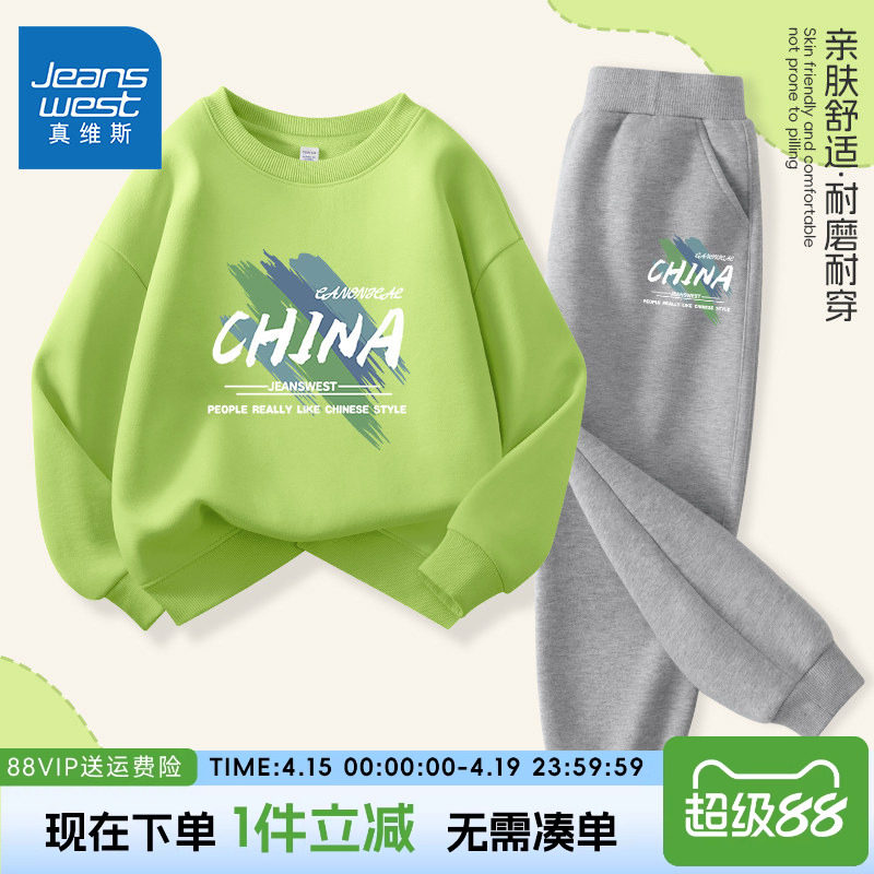 真维斯童装男童春装套装大童2026新款女童儿童春季运动加绒卫衣男