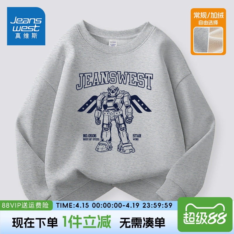 真维斯童装男童卫衣春秋款男大童春装上衣儿童春季男孩加绒衣服潮