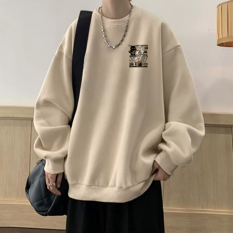 日系纯色简约百搭休闲卫衣男大码宽松潮牌原宿风圆领长袖无帽外套