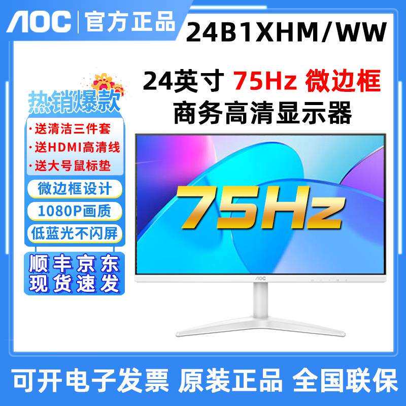 AOC 24B1XHM/WW 24英寸IPS屏壁挂高清液晶家用27B1H/WW白色显示器