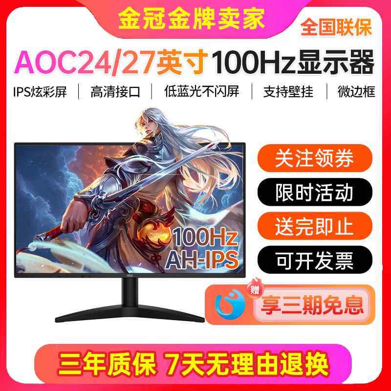 三年质保全新AOC冠捷 24寸27寸 IPS高清显示器100HZ高刷电脑屏幕