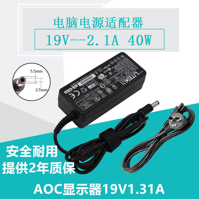 适用于AOC液晶显示器 24G15N电源适配器19V1.31A2.1A充电器线通用