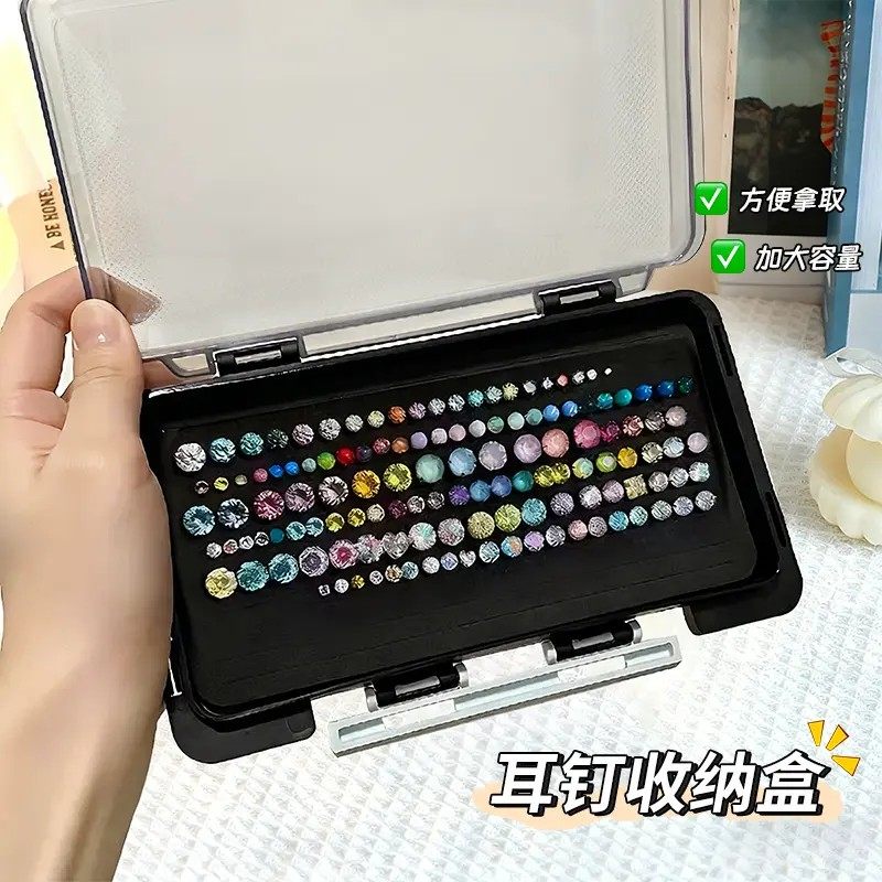 耳钉首饰收纳盒抗氧化串珠美甲饰品便携透明迷你小型饰品整理盒子