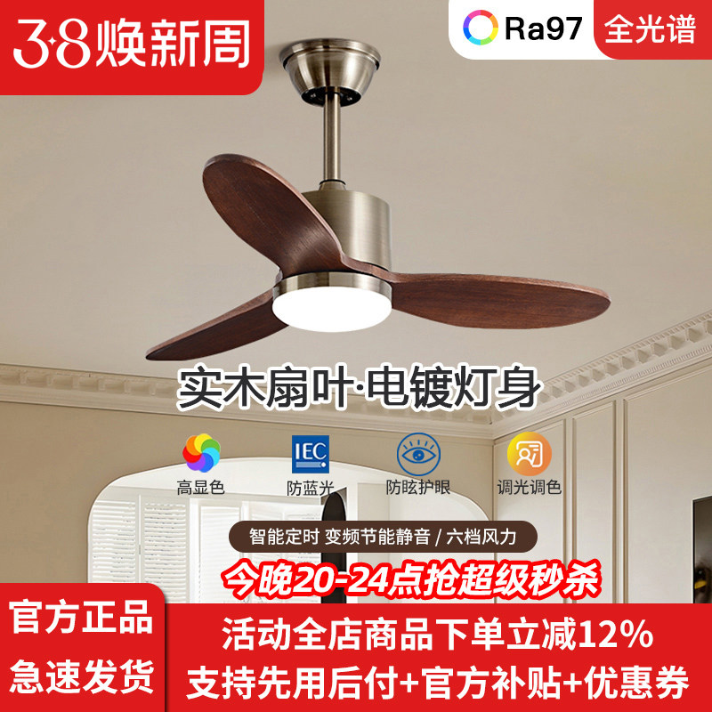 中古风扇灯实木餐厅卧室吸顶电扇灯复古小尺寸吊扇灯静音美式书房