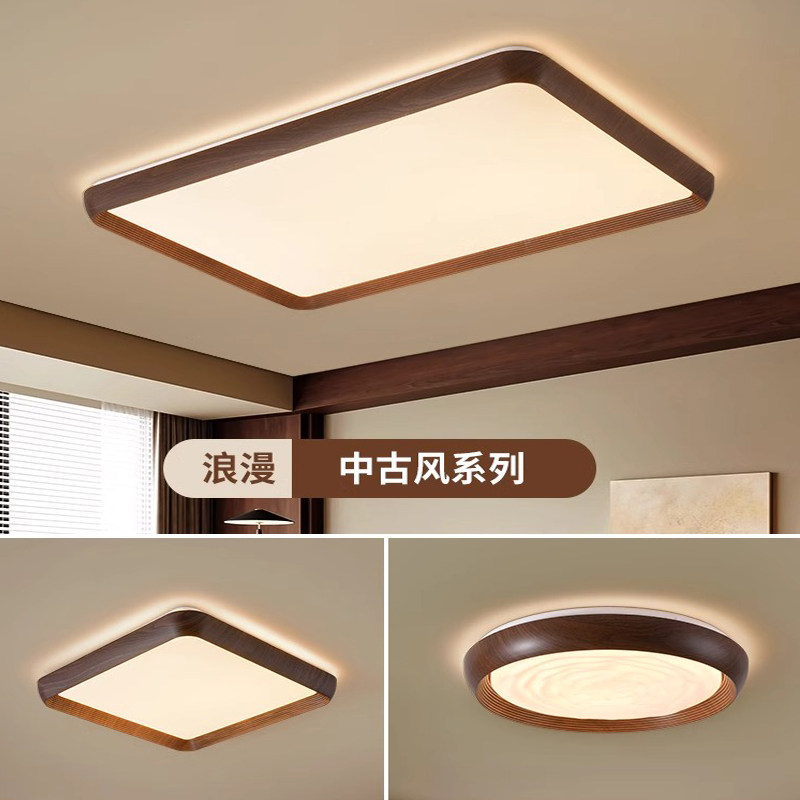 中古风胡桃木客厅灯卧室灯复古侘寂风木纹护眼LED简约套餐吸顶灯