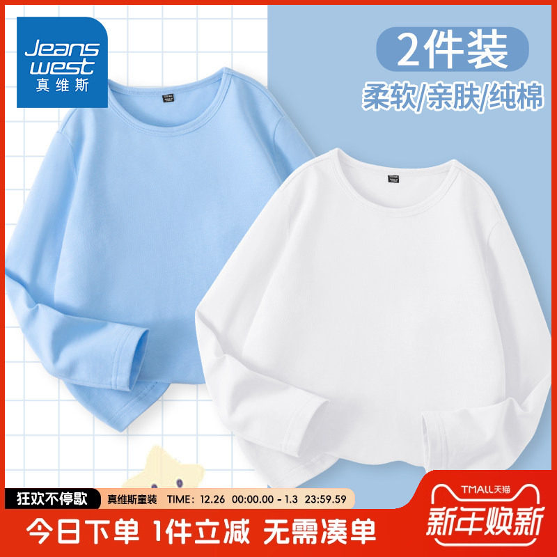 真维斯童装男童长袖t恤春秋款儿童秋季打底衫女大童白色纯棉秋衣