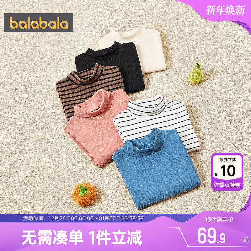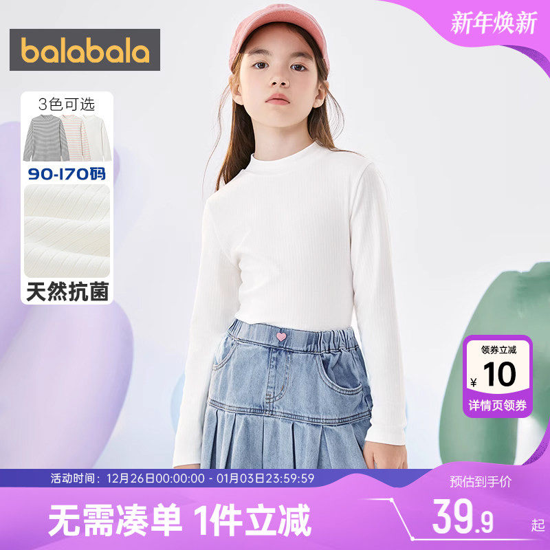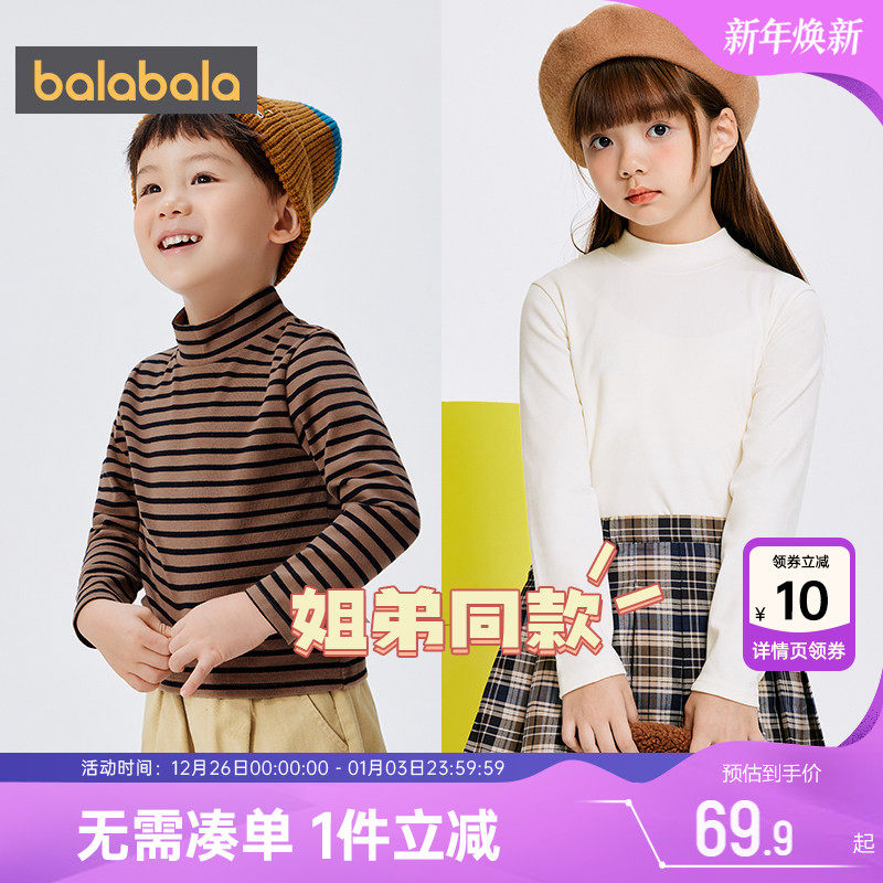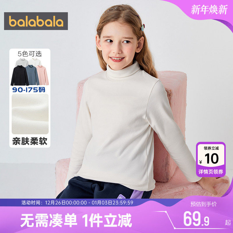 巴拉巴拉儿童长袖t恤大童白色高领打底衫秋冬款童装男童女童上衣