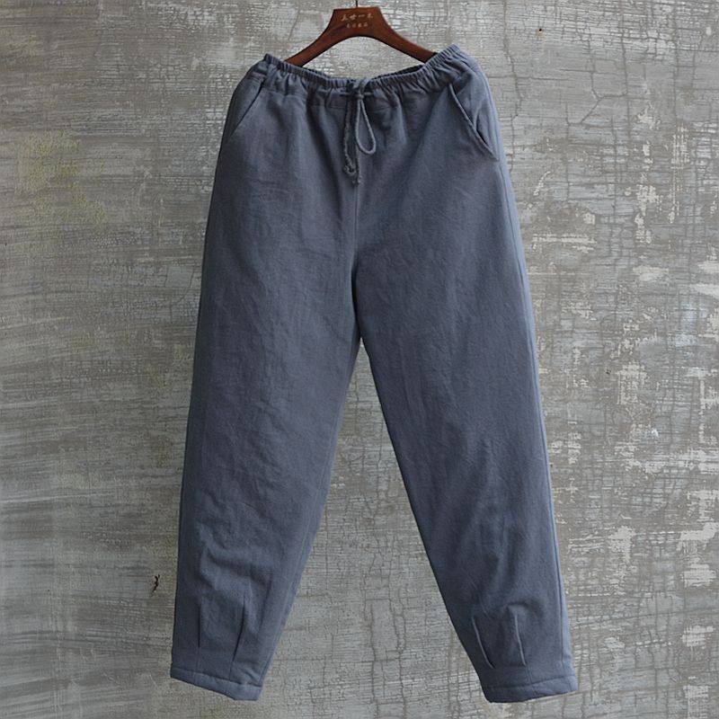 亚麻棉裤男中国风男裤直筒棉麻休闲裤复古加厚中老年保暖棉花长裤