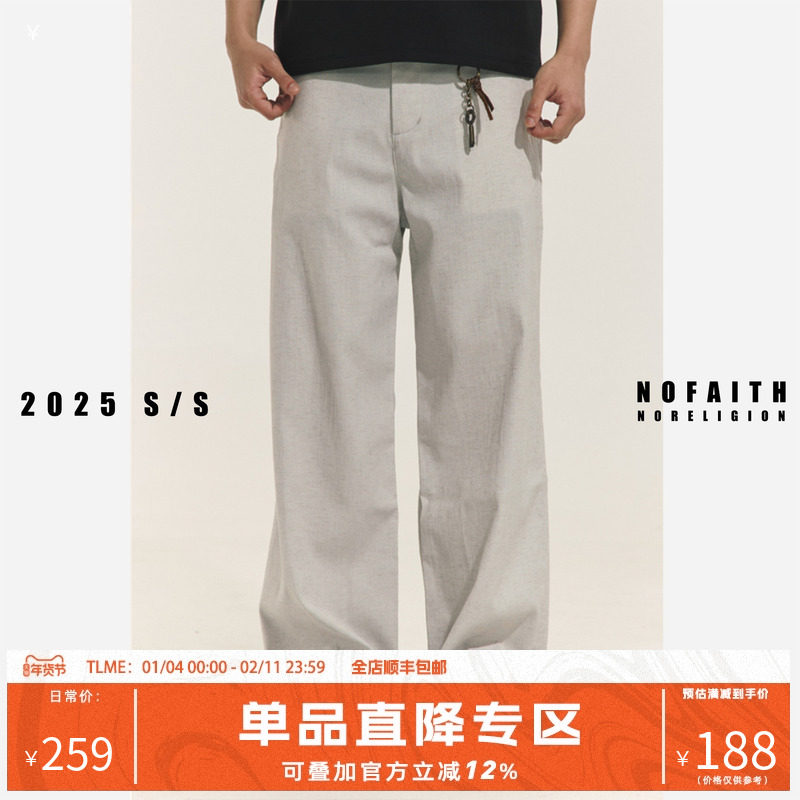NOFAITH亚麻混纺老钱风抗皱休闲裤男夏轻薄透气棉麻宽松直筒长裤