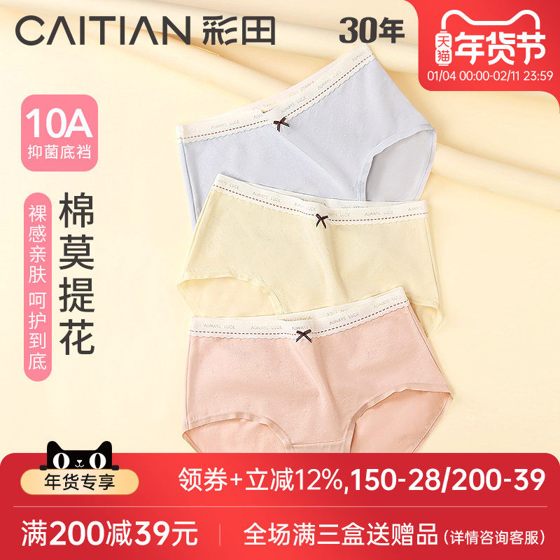 彩田新款莫代尔棉蝴蝶结纯色简约内裤女抗菌裆女士中腰25年三角裤