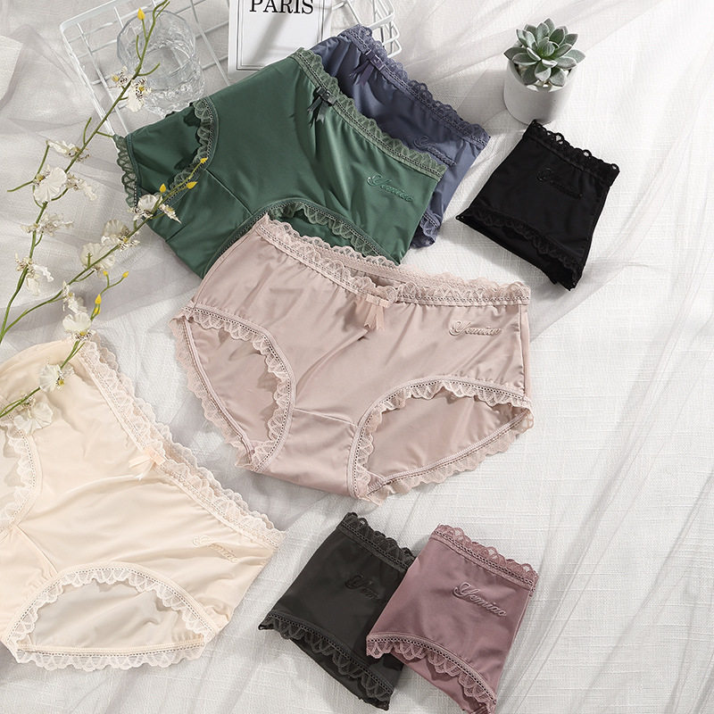 UFEEL【中腰蕾丝】内裤女微收腹提臀简约加长蚕丝底档三角裤2519