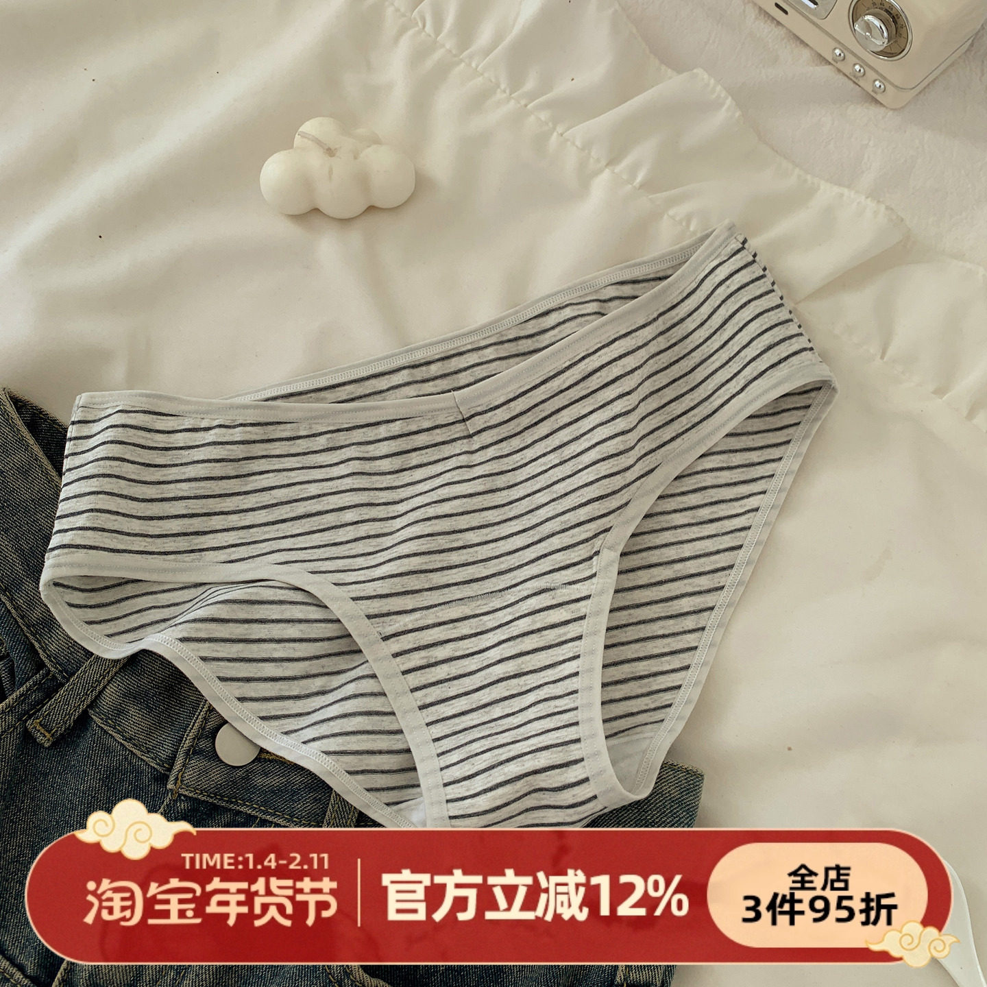 森日和叶 条纹女士低腰纯棉三角裤新款10A抗菌加长裆简约内裤女生