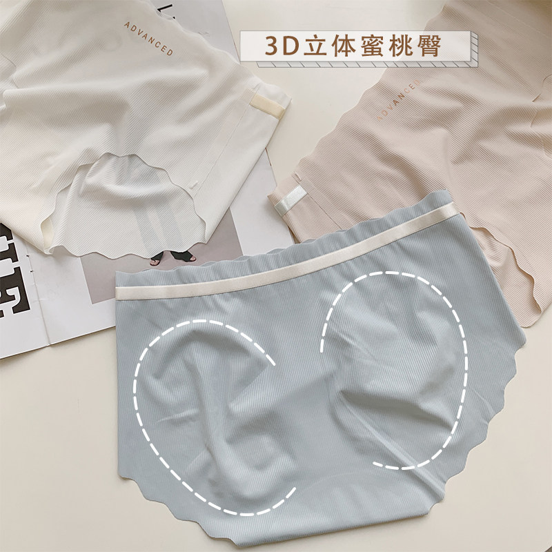 幻蓝妖姬~无痕冰丝蜜桃臀防滑腰部一片式包臀清凉少女简约内裤女
