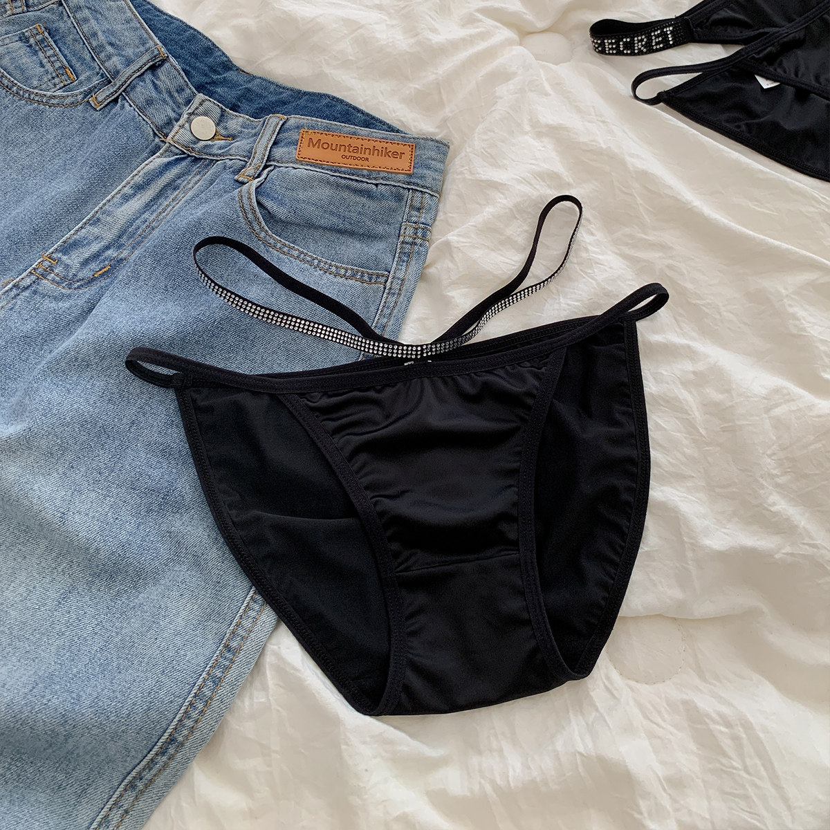 热辣设计 性感简约内裤女夏季薄款纯色高开叉闪钻少女低腰三角裤