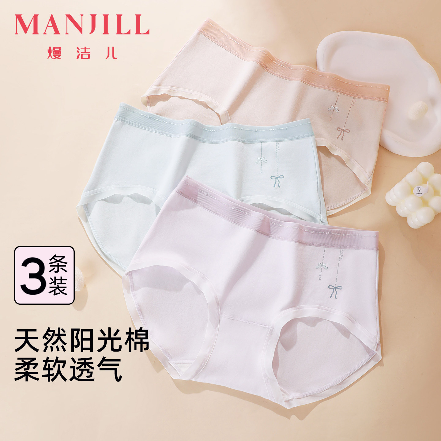 【3条装】熳洁儿95%棉氨简约内裤女中腰舒适透气含桑蚕丝三角内裤