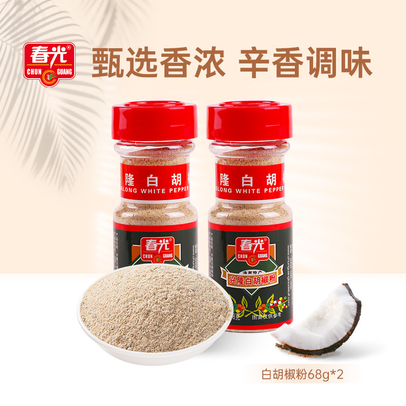 春光白胡椒粉68g*2瓶 海南特产 胡椒芳香辛辣 兴隆白胡椒粉 瓶装