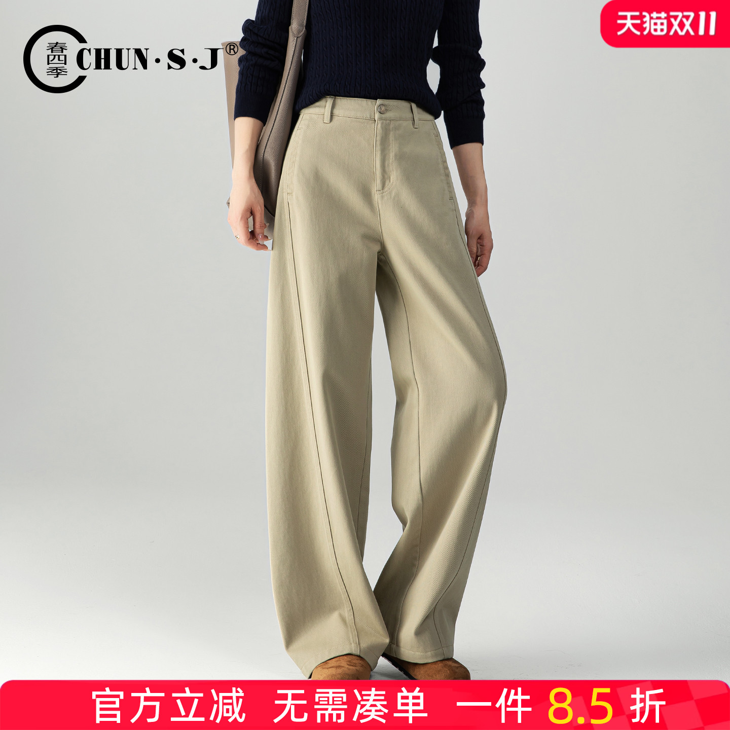 巨显瘦四面弹侧拼接高腰阔腿裤女秋季裤子宽松直筒牛仔裤长裤春秋