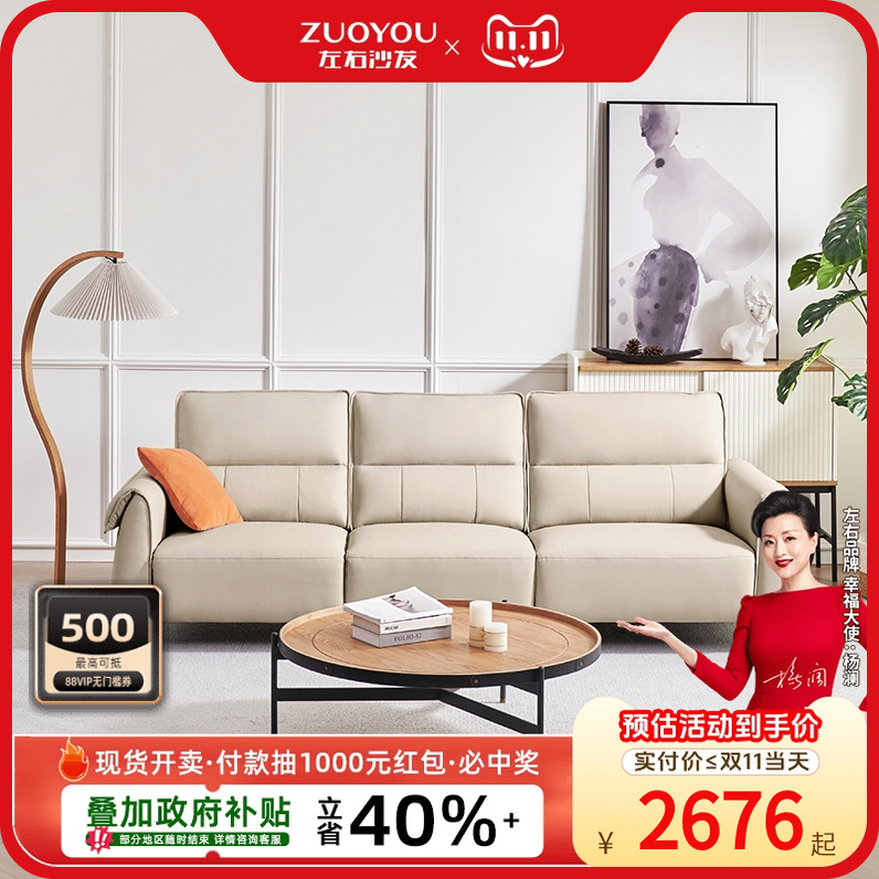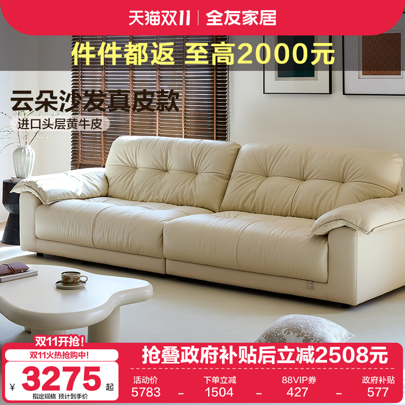 全友家居现代简约云朵真皮沙发客厅2025新款小户型奶油风沙发床