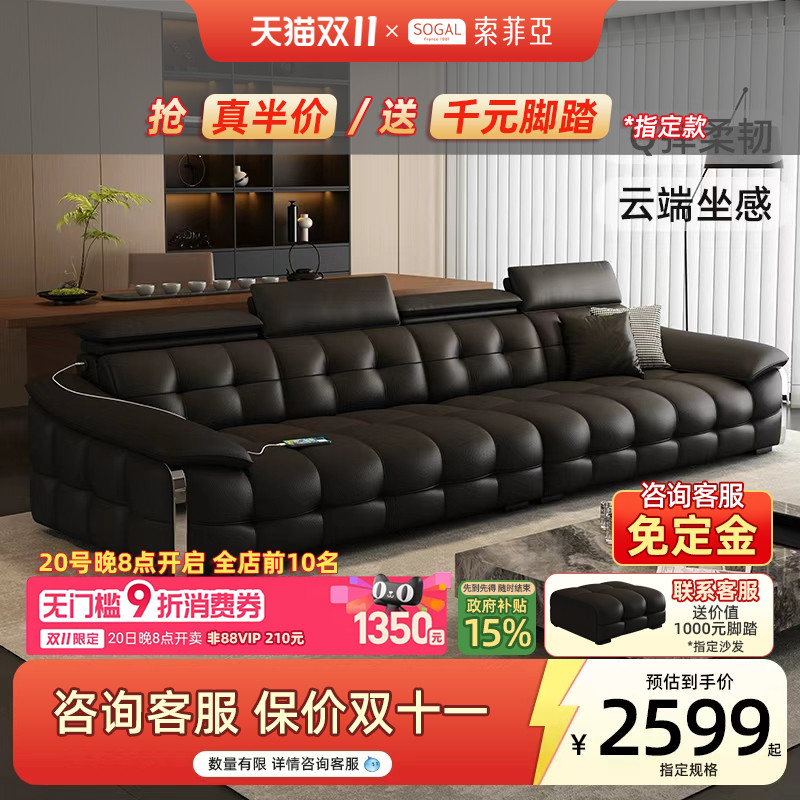 云朵真皮沙发意式极简大小户型现代简约头层牛皮直排黑色沙发客厅