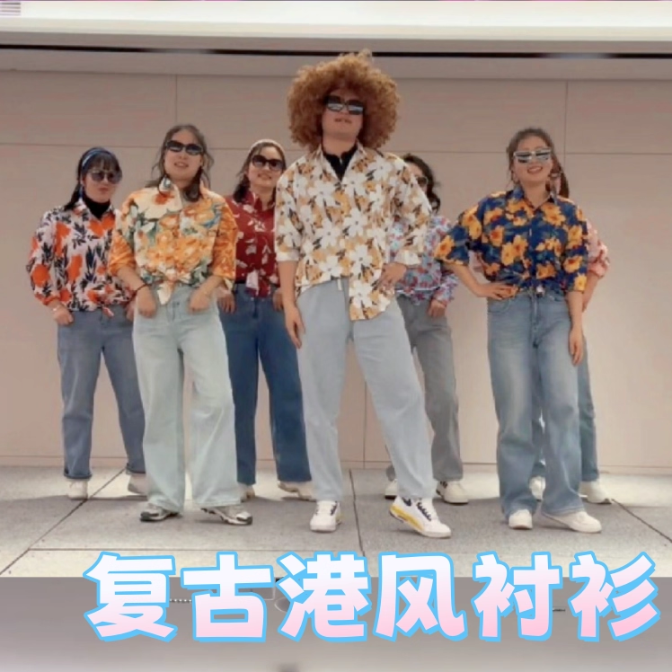 护花使者演出服串烧舞蹈服装宽松男生花衬衫港风高级感上衣衬衣女