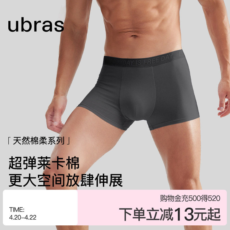 ubras纯棉男士内裤舒适透气抗菌平角裤青少年莫代尔四角短裤男生