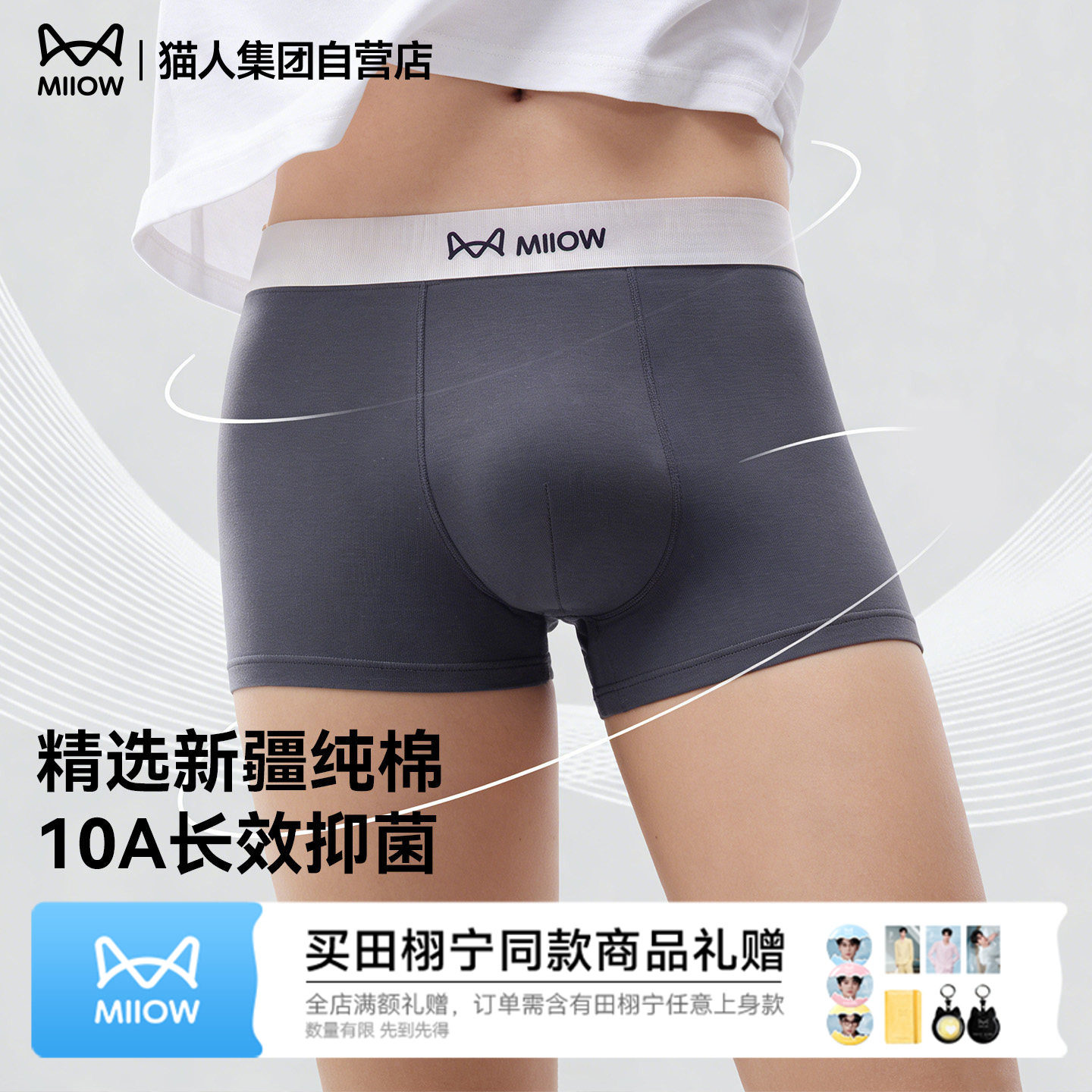 猫人纯棉男士内裤10A抑菌裆舒适透气全棉四角裤衩2026男款平角裤