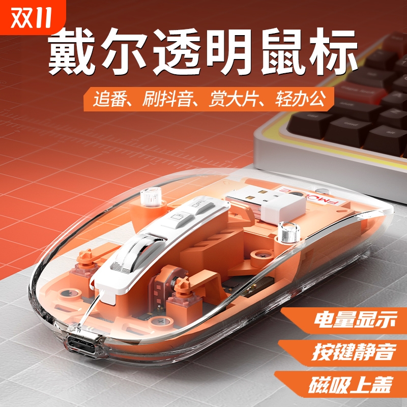 透明无线静音鼠标蓝牙三模游戏充电款笔记本台式电脑办公专用磁吸