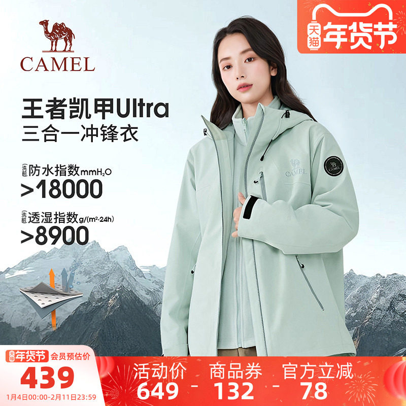 骆驼王者凯甲Ultra冲锋衣三合一女冬新款加绒加厚防水旅游外套男