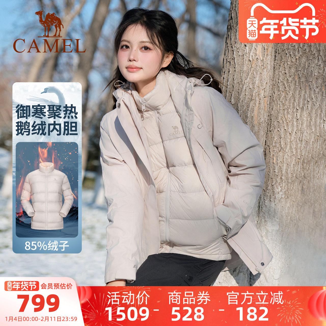 骆驼大朵鹅绒冲锋衣女三合一外套加厚御寒羽绒服户外防水滑雪服男