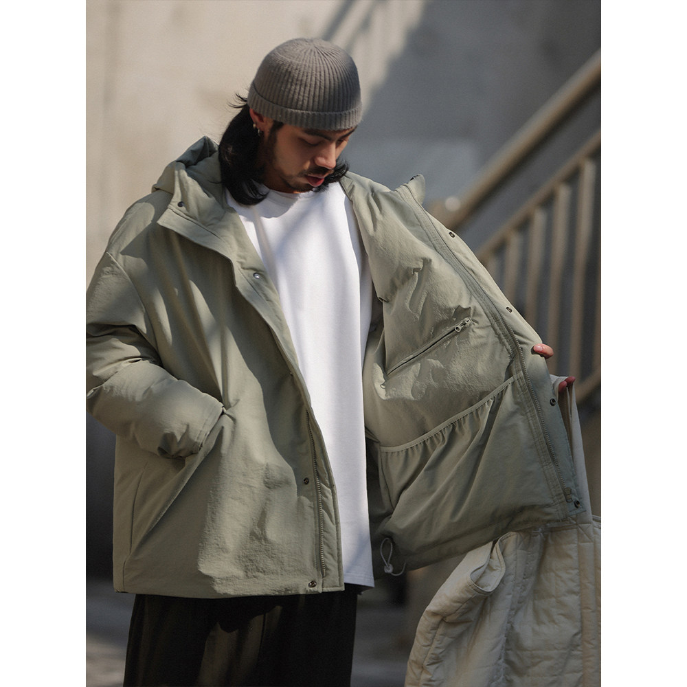 美式高街纯色简约男士休闲连帽棉服秋冬保暖抗寒二棉冲锋衣厚外套
