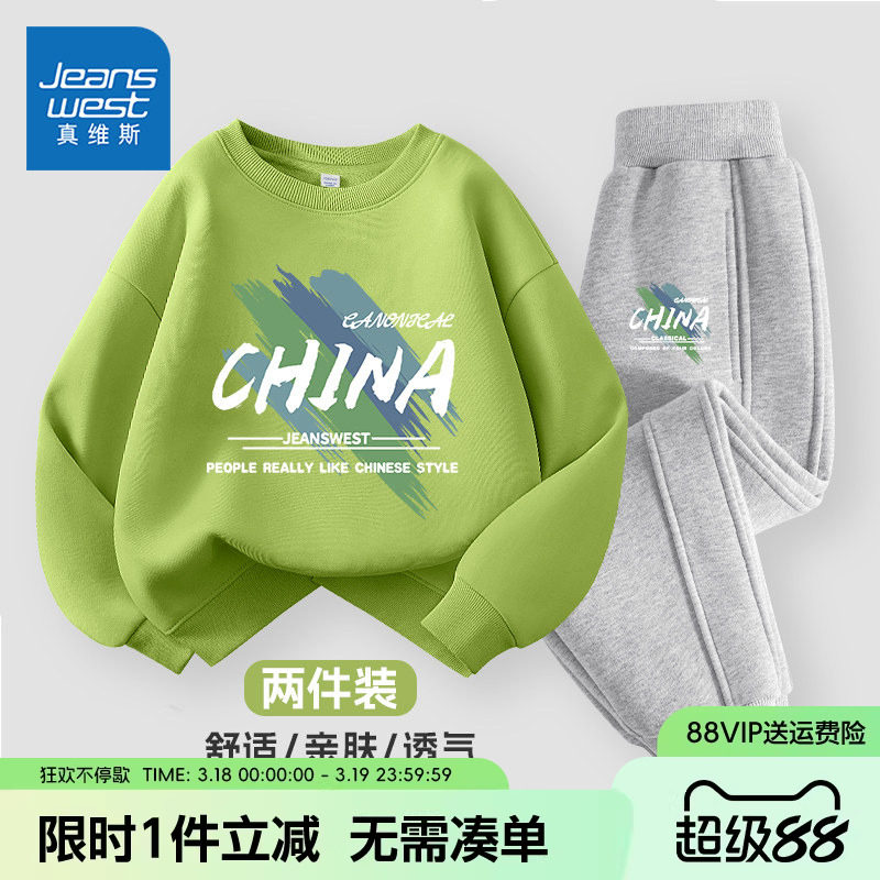 真维斯童装男童春装卫衣男孩2026新款春秋款儿童时髦运动大童套装