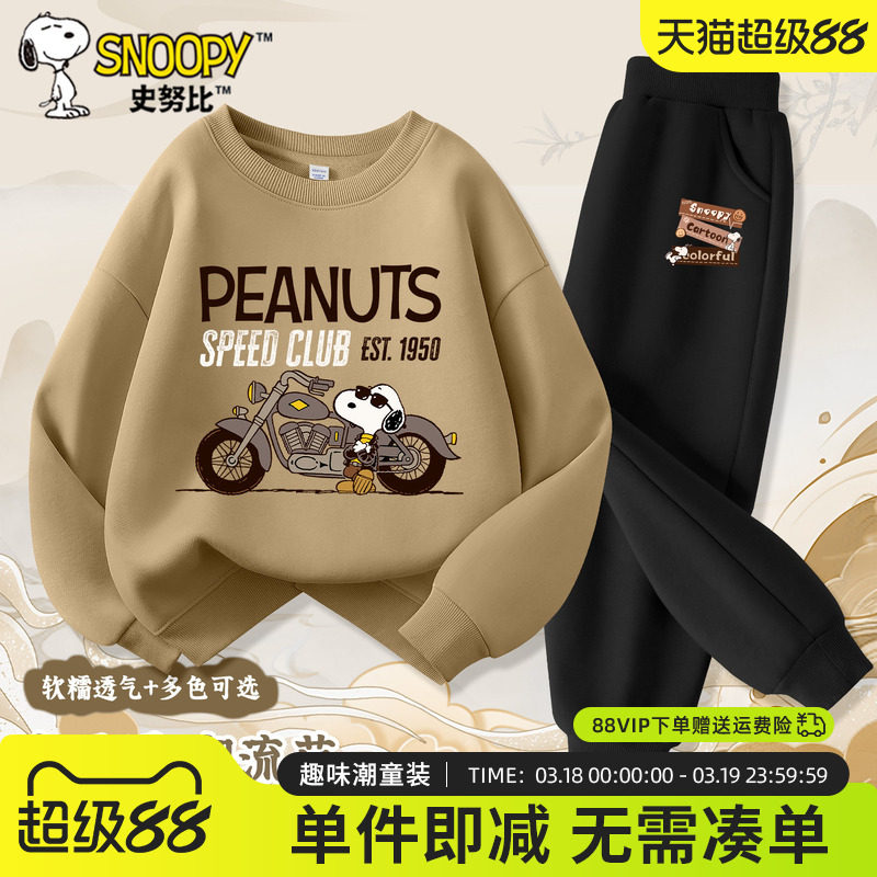 史努比童装男童春装套装2026新款潮酷男大童裤子春新款儿童运动服