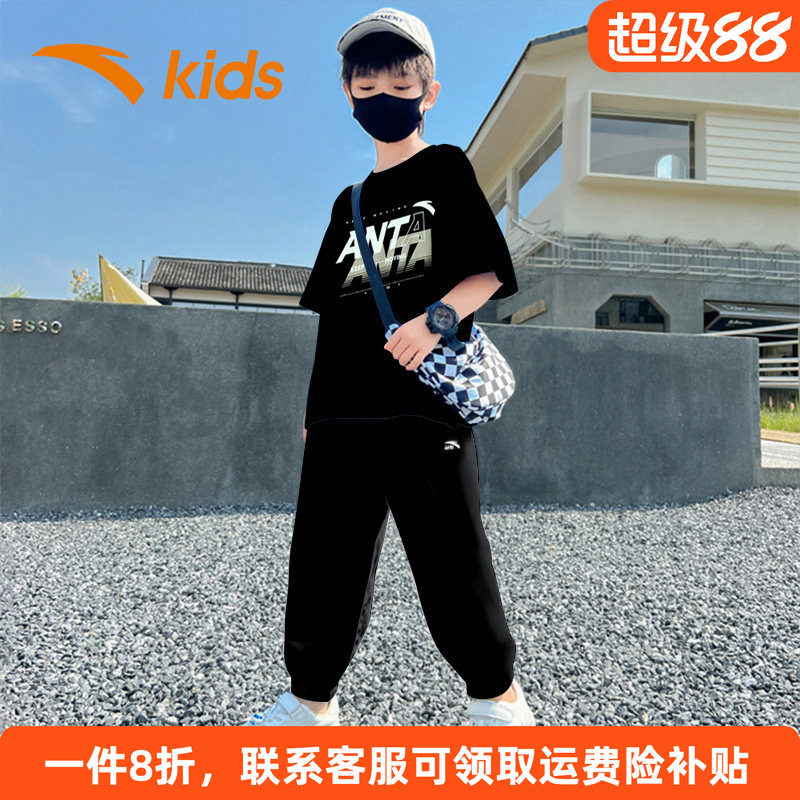安踏童装男童速干套装2026春季新款儿童短袖短裤套装大童运动夏装