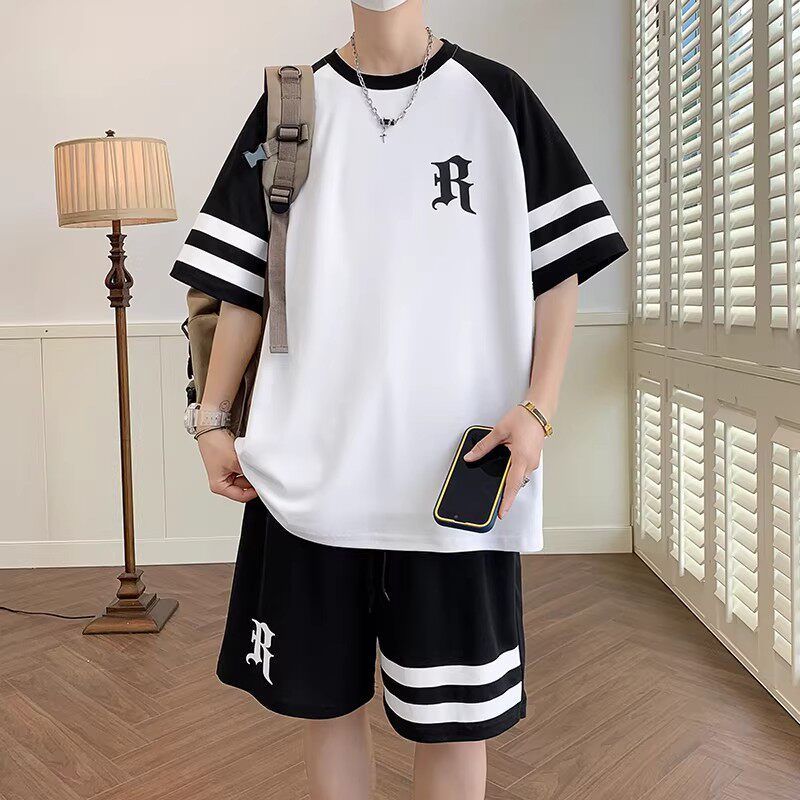 冰丝短袖t恤男孩夏季新款青少年初高中学生套装大童运动篮球衣服