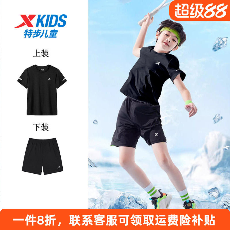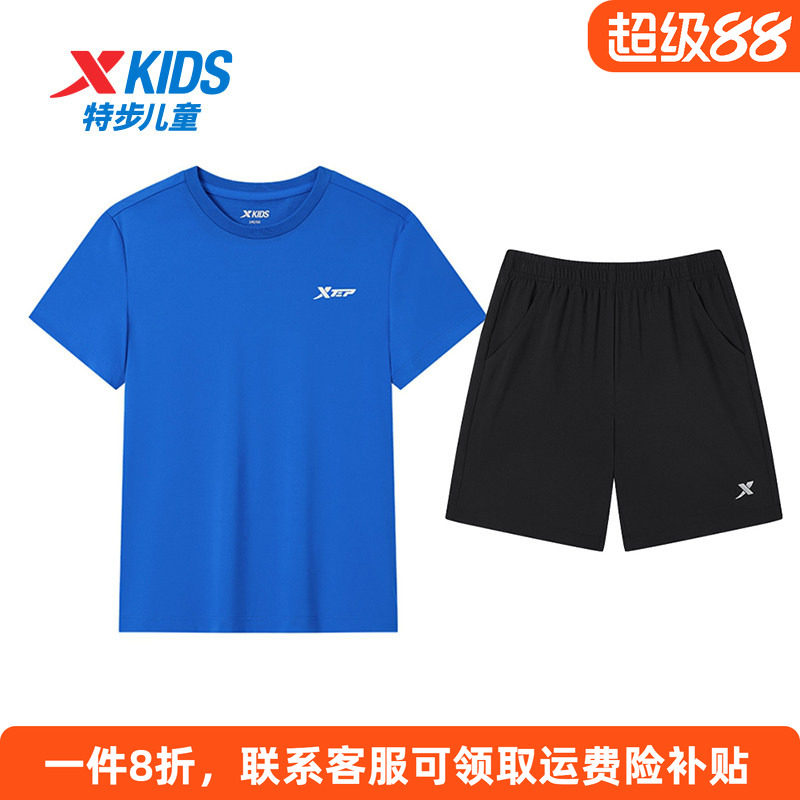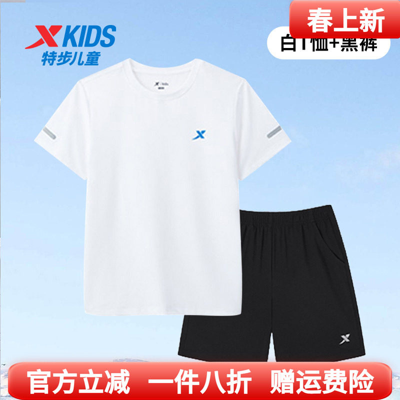特步童装男童速干短袖套装2026夏季新款儿童休闲套装大童运动夏装