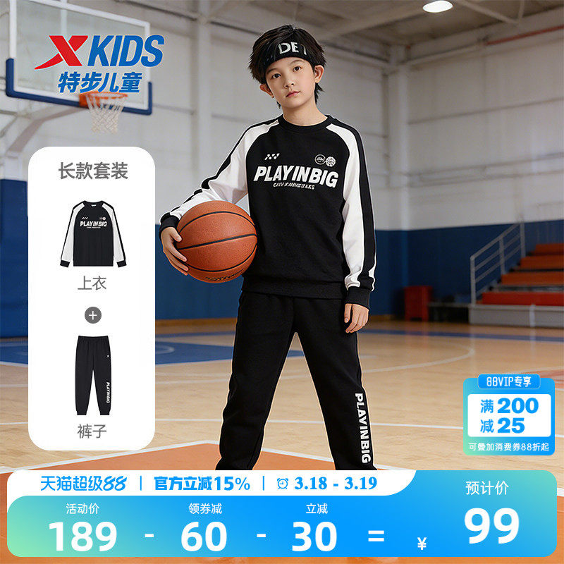特步儿童运动套装男童中大童2026新款春季卫衣运动服男孩学生男生
