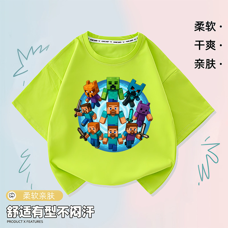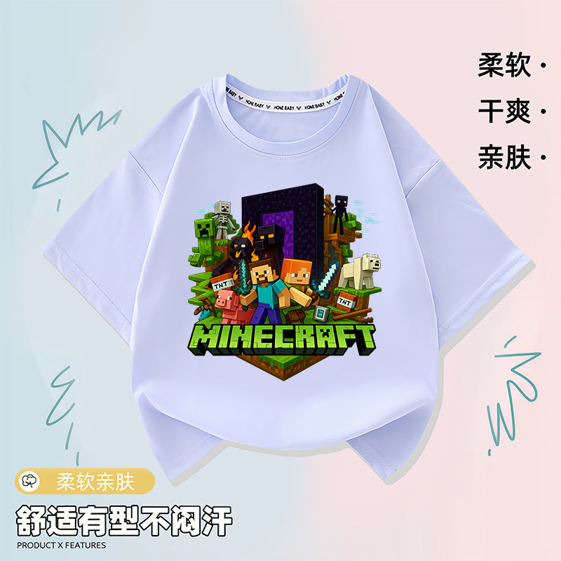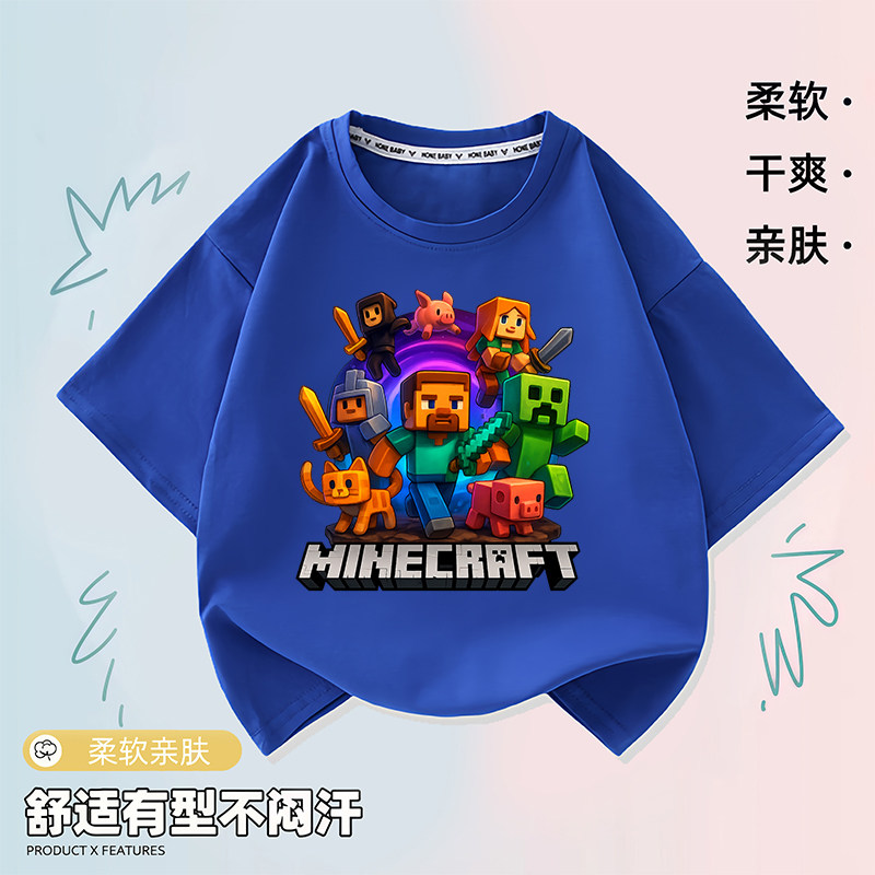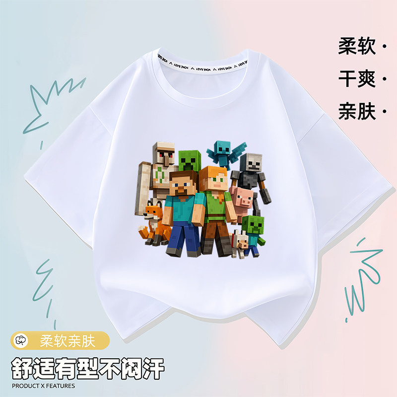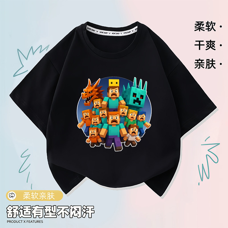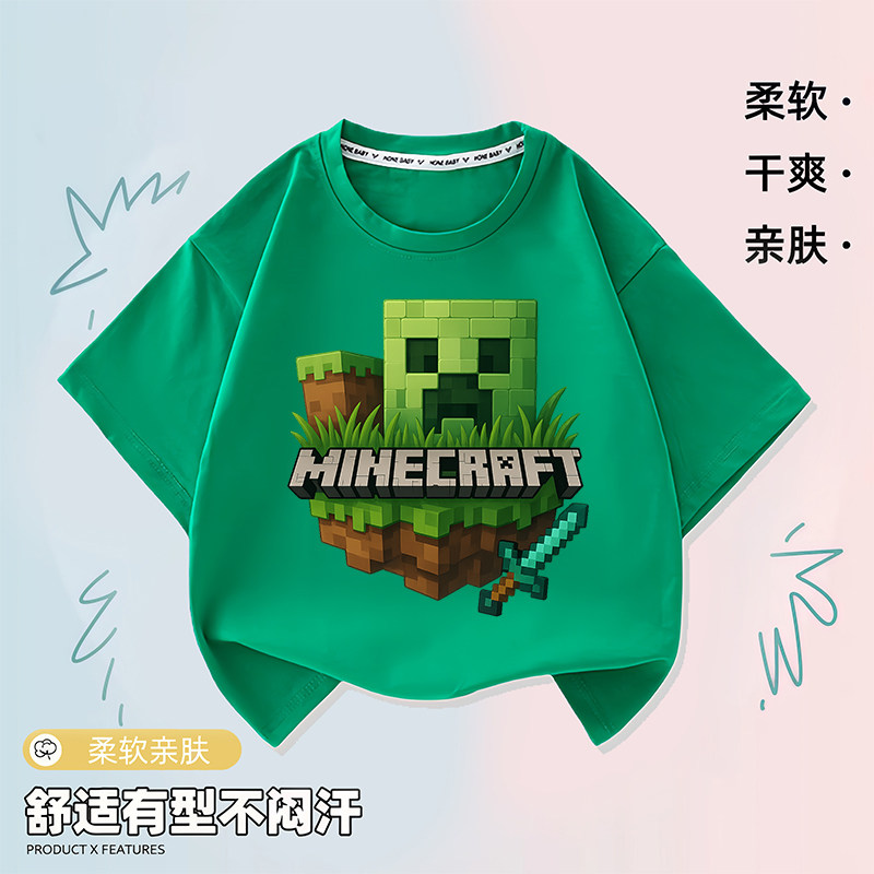 我的世界Minecraft圆领上衣男童纯棉T恤儿童休闲短袖夏季吸汗半袖