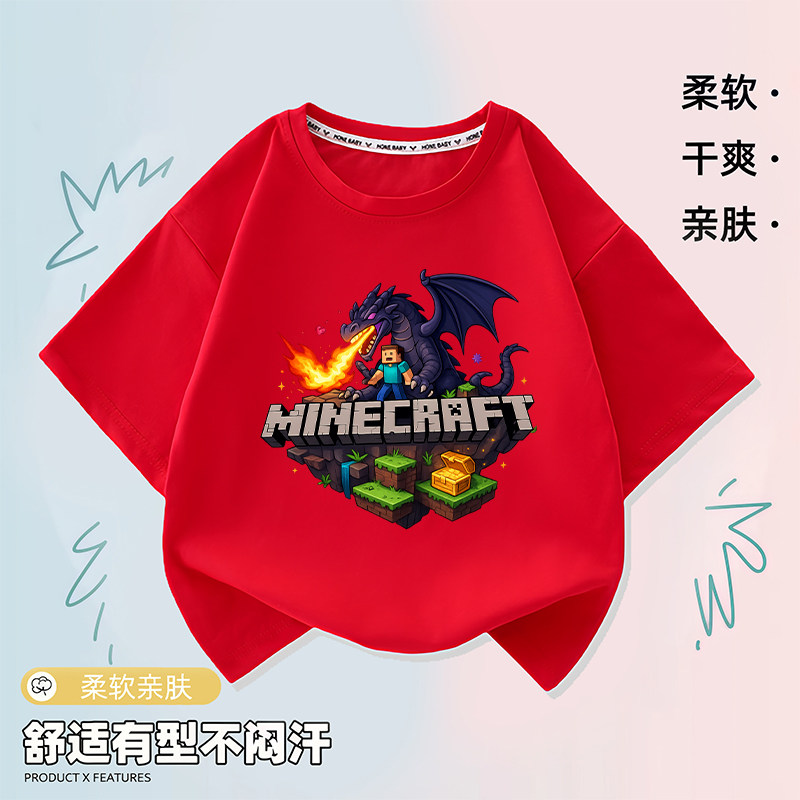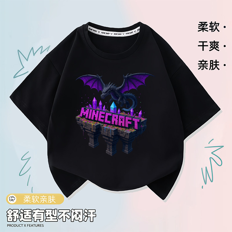 我的世界Minecraft衣服末影龙男童帅气短袖儿童半袖T恤宽松上衣潮
