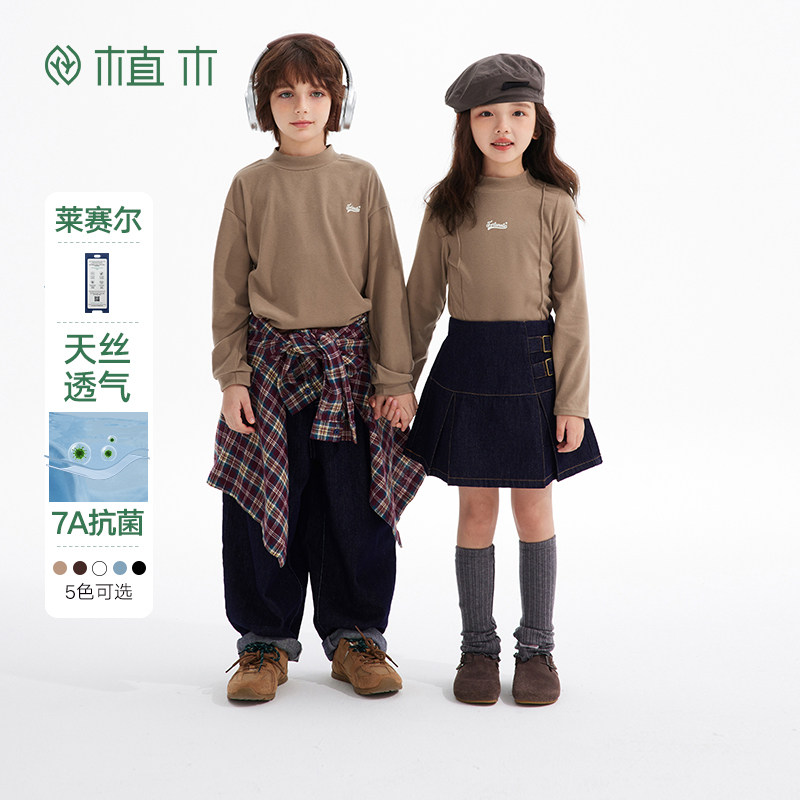 植木童装男童女童T恤小衫2025新儿童衣服秋冬中大童兄妹装长袖T恤