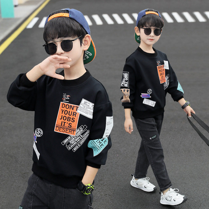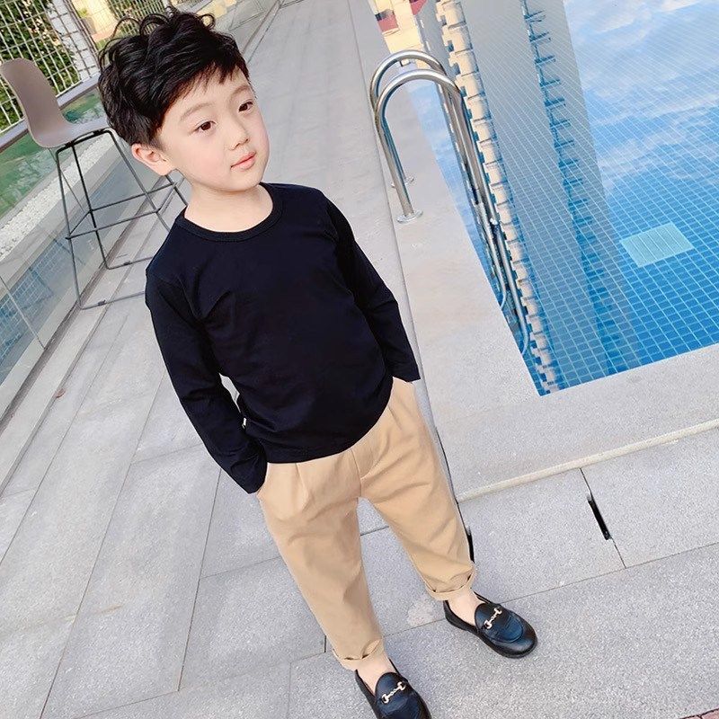男童小衫宝宝长袖t恤纯棉长袖白色小童打底内搭潮中童帅气男宝黑
