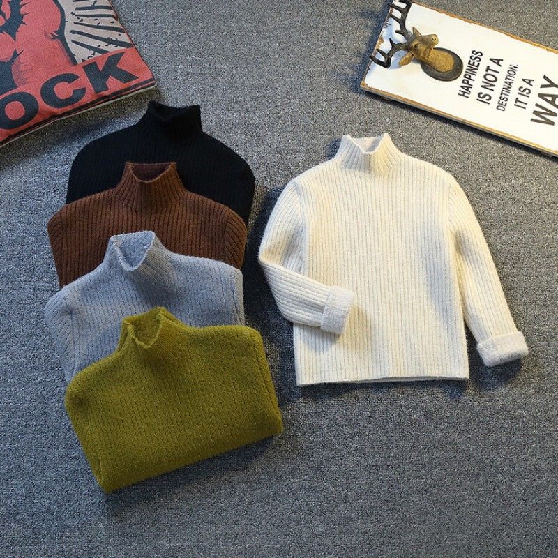半高领双面绒毛衣打底衫男童女童秋冬纯色加厚保暖线衣针织衫小衫