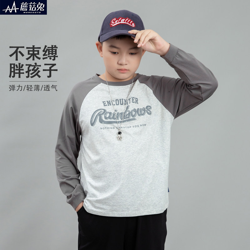 胖童t恤男长袖春秋薄款2025新款初中生大男孩打底衫男童圆领小衫
