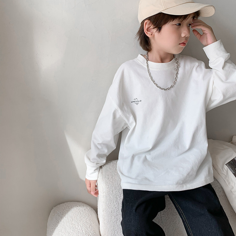 2023春装新款男童长袖t薄款纯棉内搭打底衫白色儿套头小衫儿童潮