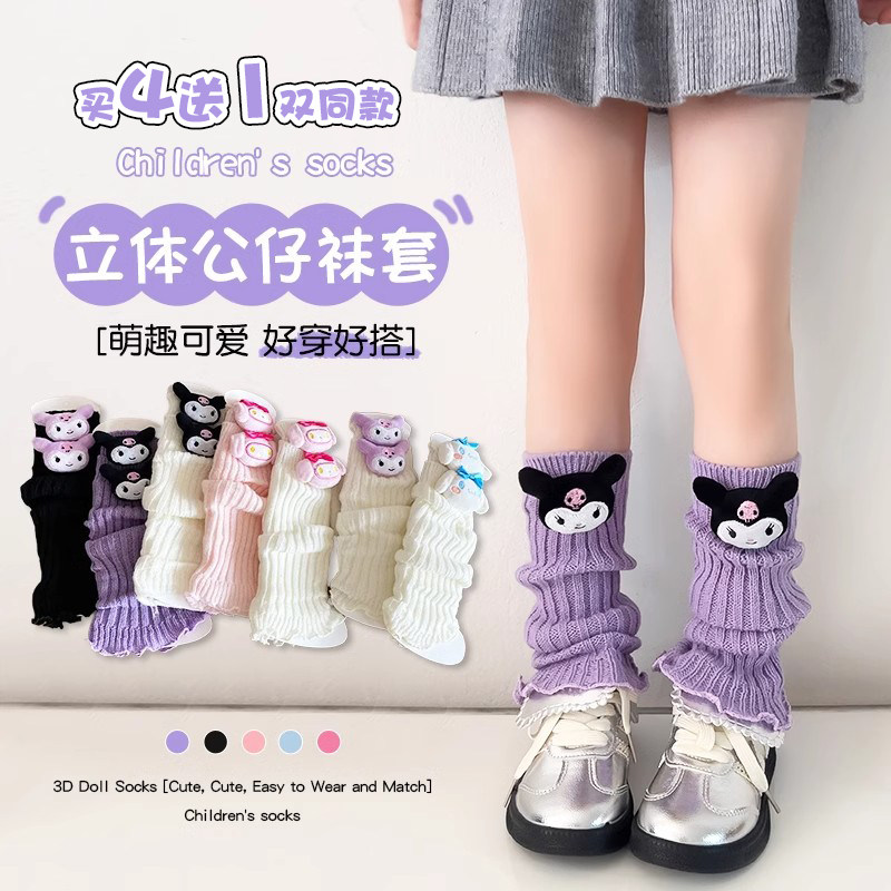儿童纯棉花边腿套库洛米玩偶冬季保暖袜套可爱女童宝宝小腿堆堆袜